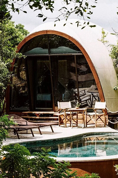 Wild Coast Tented Lodge offers a unique luxury safari experience, combining the thrill of wildlife encounters with the comforts of a high-end resort. The tented suites are designed to blend seamlessly with the surrounding landscape, providing an immersive experience in nature.